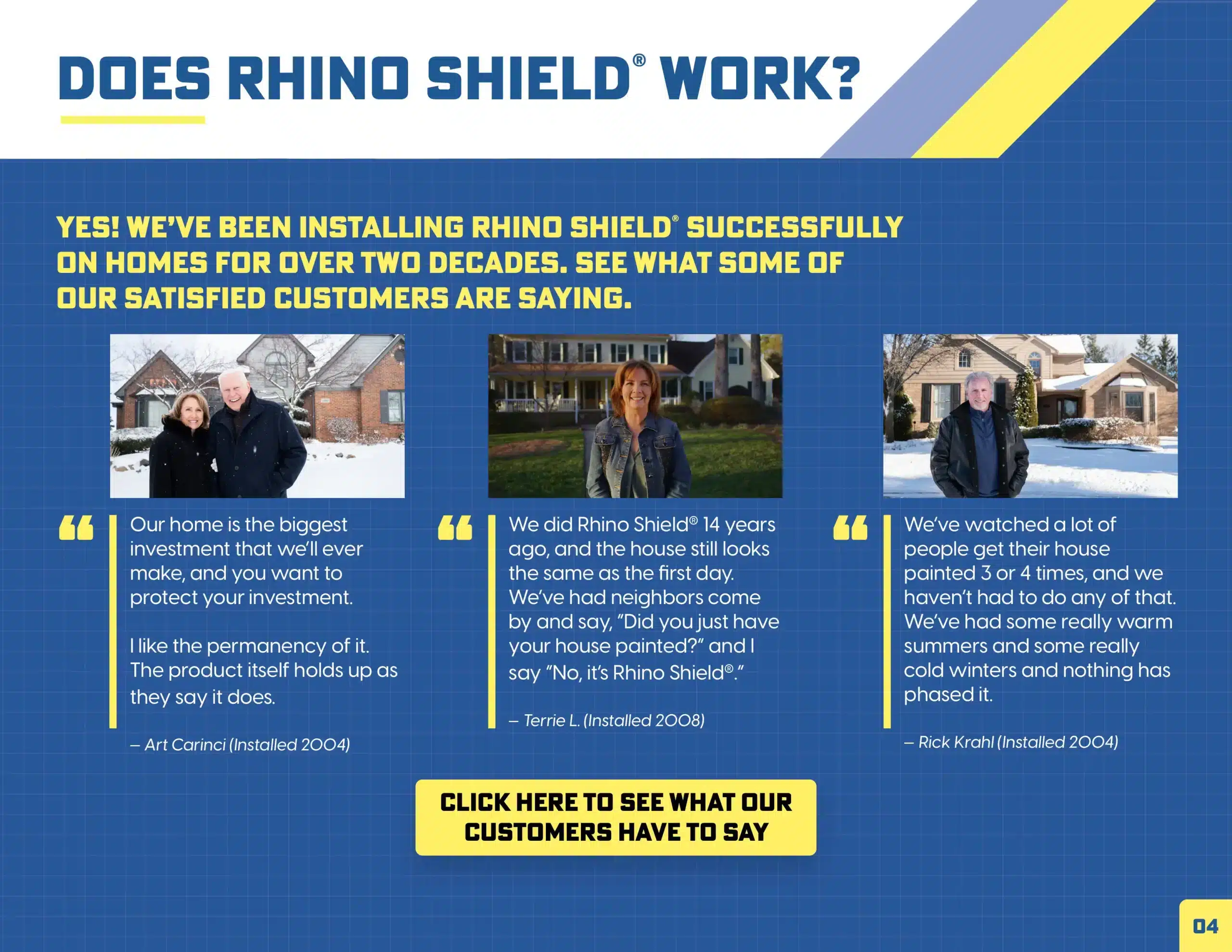 Your home is your biggest investment, and choosing who protects it is a decision that shouldn’t be taken lightly. At Rhino Shield, we stand behind every project with a commitment to customer satisfaction. Our team of experts takes the time to assess your home’s unique needs, ensuring a flawless application that enhances both protection and aesthetics.